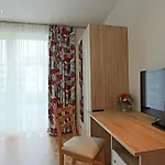 Otelin odaları parke zeminlere ve banyo küveti, duş içeren banyolara sahiptir.